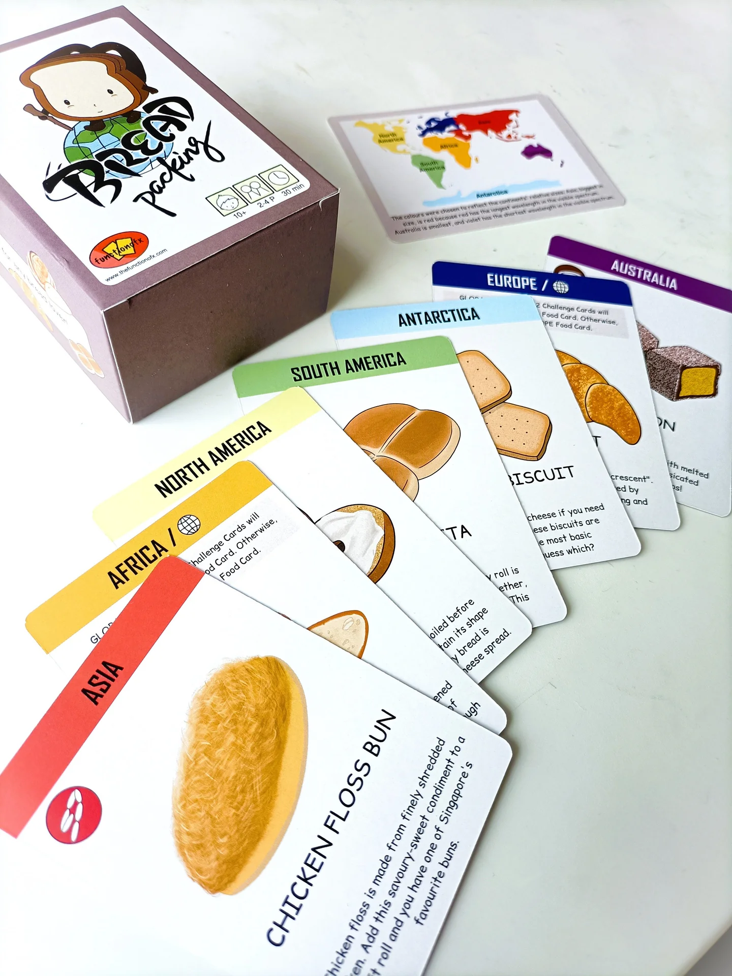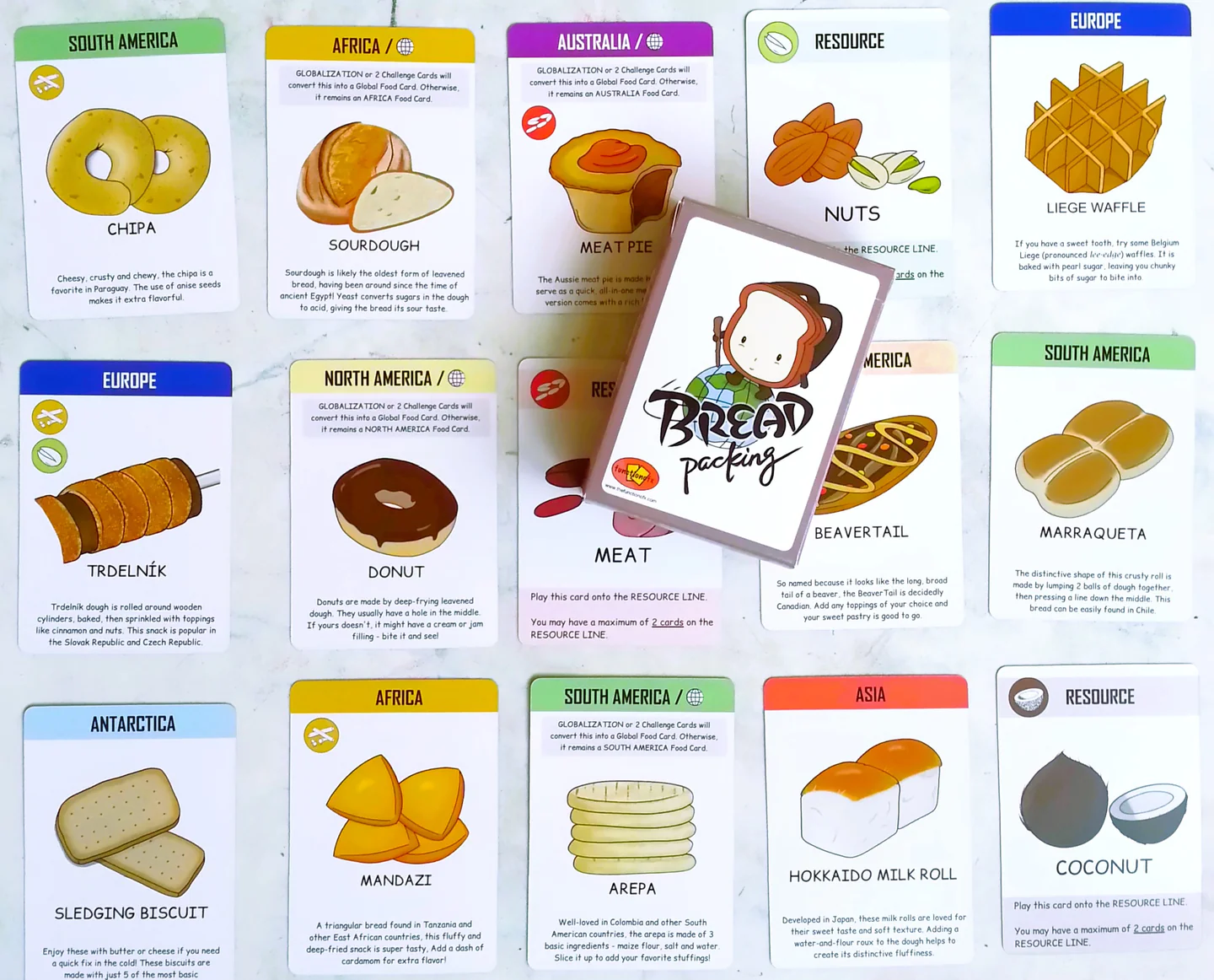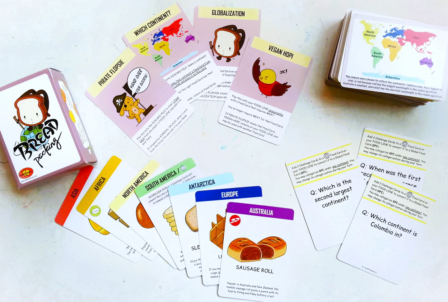 Answer Challenge Cards to activate special powers. Use Action Cards to steal, trade, or sabotage others to be the first to get bread from all 7 continents. A must-have for bread-lovers and all who are interested in learning about countries and civilisations.
